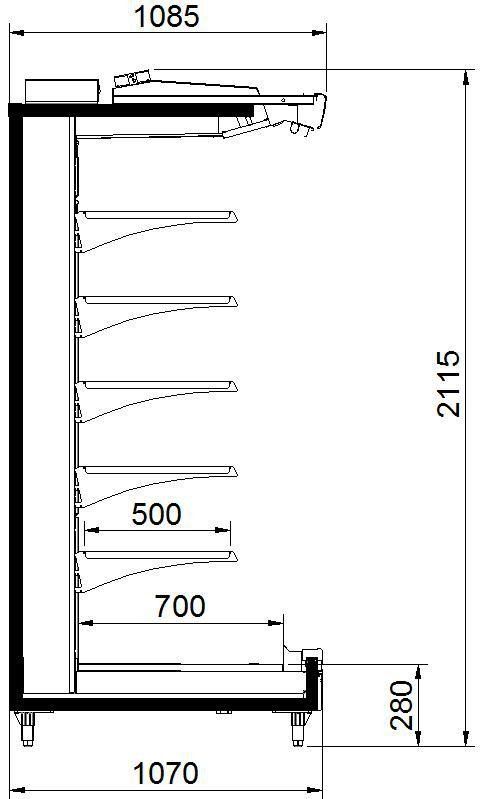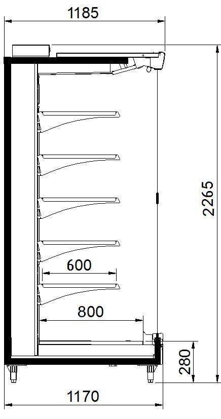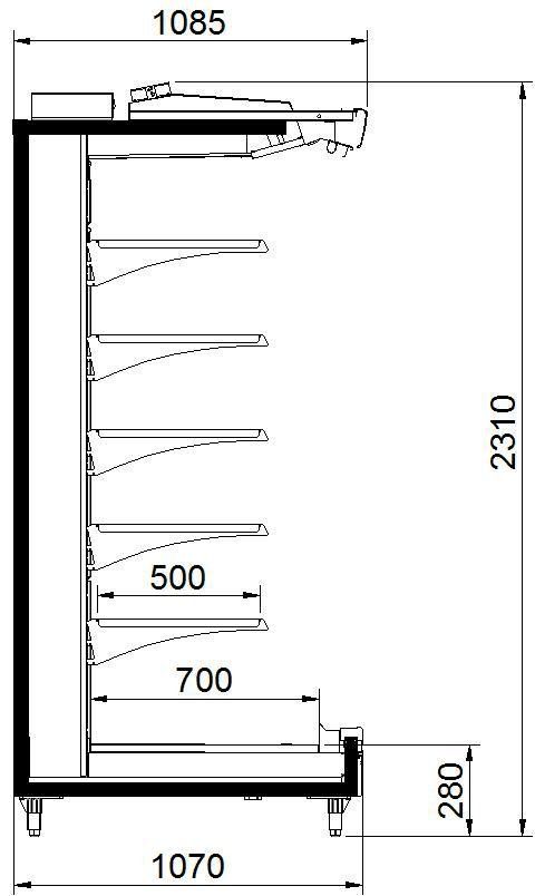 - גסטרונומי: 5 שורות של מדפים 500 מ"מ כל אחת עם הטיה מתכווננת; מחזיקי תוויות מחירים, פלסטיק